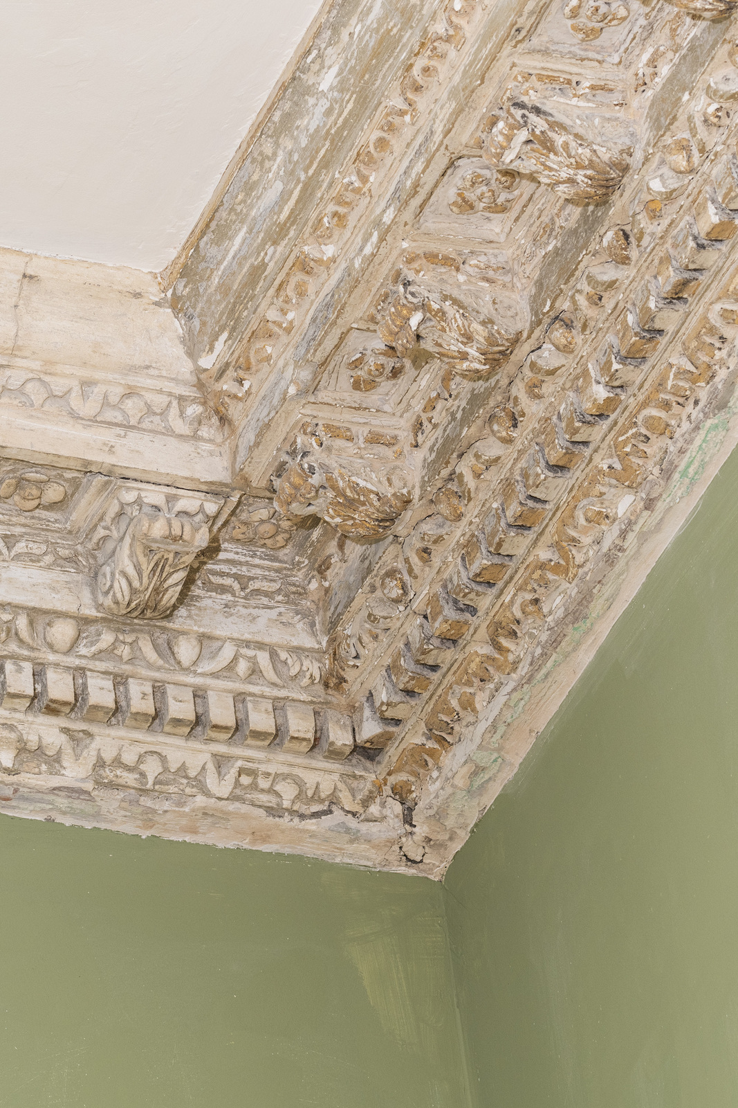 When I entered the ground floor rear parlour room, I immediately noticed that the room retained a complete run of wooden cornicing and its wonderful original wooden panelling. The ground and first floors which were mostly devoted to entertaining spaces evidenced a remarkable amount of the surviving original decorative features. The dining room and drawing room were located off the entrance/staircase hall. The first floor reception rooms are generously proportioned and grand with superb cornicing which at the time was almost completely covered by hundreds of years of whitewashing.