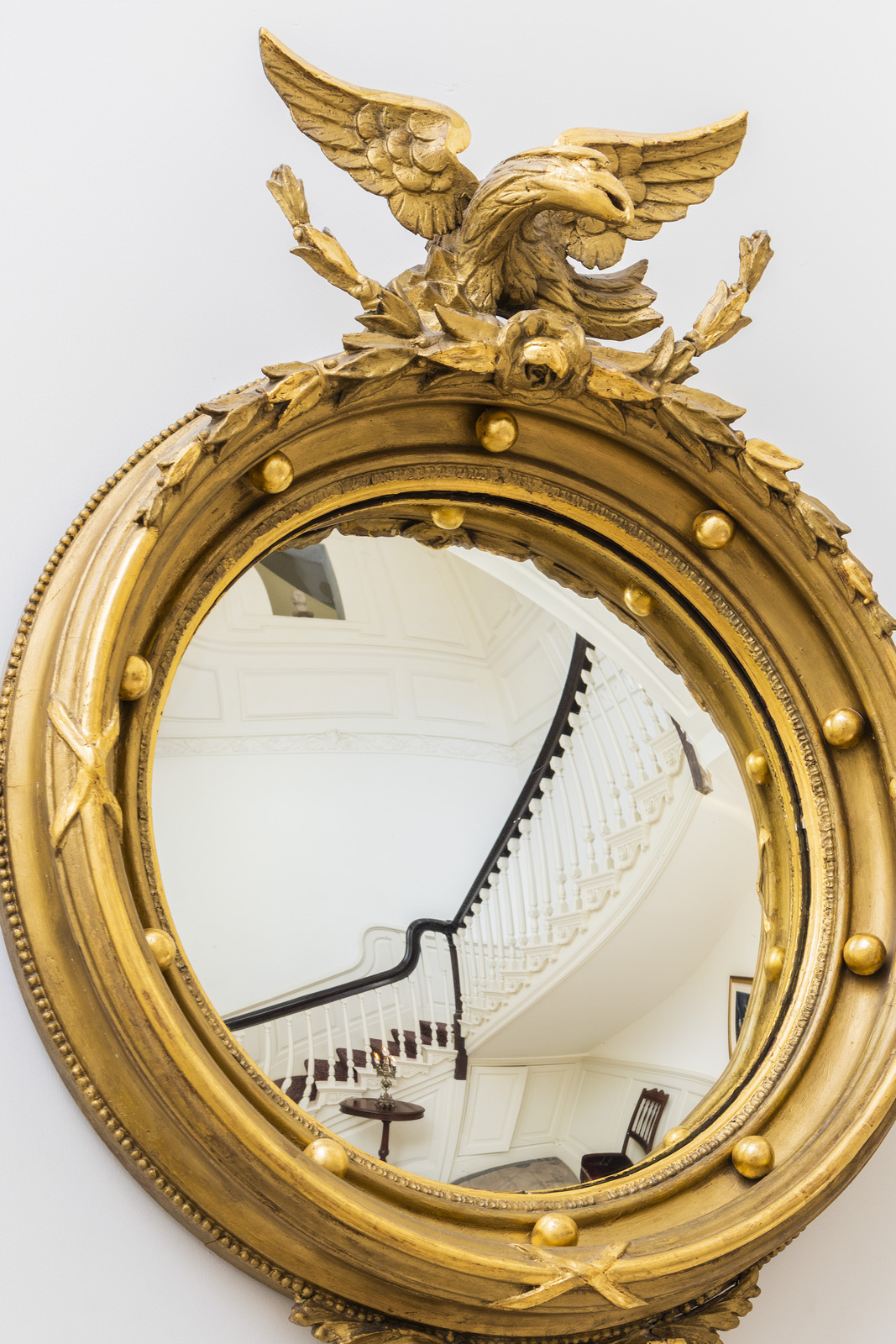 Walking further into the back hallway, I saw the virtuosic, almost spiral, service stair-case which runs from the basement to the top of the house. This staircase, although in very poor condition at that time, was unaltered from its original construction and retained its fine Doric balusters and its ramped handrail. The dramatic vista the staircase affords from every floor landing to the floors above and below is unquestionably ‘a coup de theatre’.